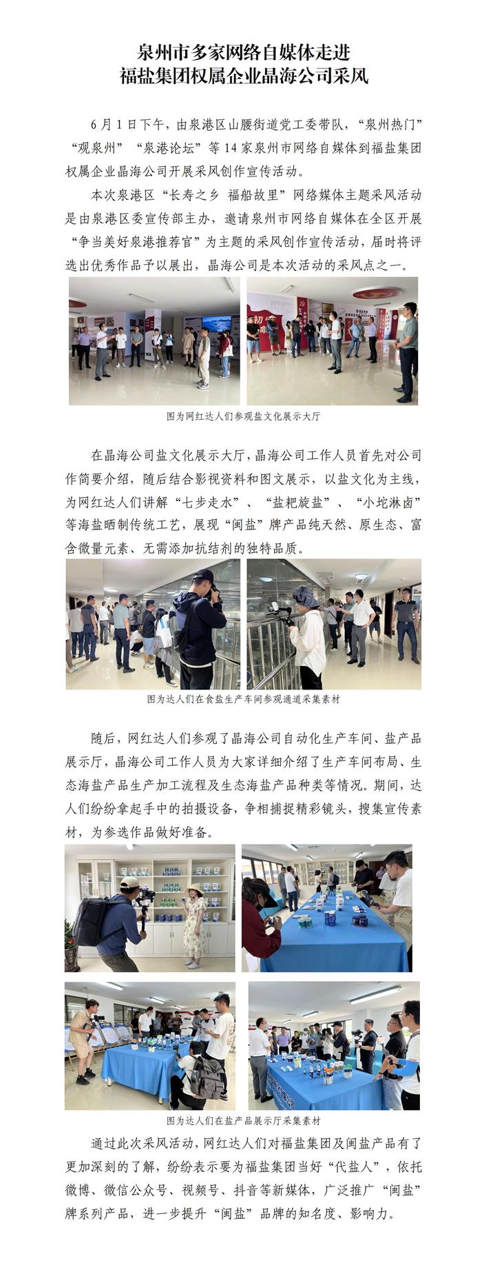 泉州市多家網(wǎng)絡(luò)自媒體走進(jìn)福鹽集團(tuán)權(quán)屬企業(yè)晶海公司采風(fēng)
